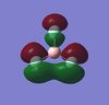 | LUMO | Boron 2pz orbital non-bonding due to unmatched a"2 symmetry. Negative energy indicates slight stability despite being vacant, further discussed in NBO Analysis. | -0.198 | 1 |