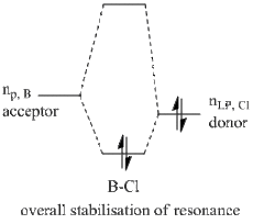 Numbers 23 and 28 on the perturbation table summarise the situation described and show the stabilisation of the anti-bonding B=Cl(3) bond by lone pairs on Cl(2) and Cl(4) atoms.