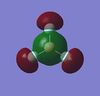 Gaussian ab inito DFT calculations have been run on an pre-optimised geometry of the D3h symmetric BH3 molecule in order to obtain the Molecular Orbital and Natural Bond Orbital Analysis for the compound. The details of the optimisation are given further below in this section. The relevant MO's obtained from the Gaussian software are given below along with their LCAO equivalents.