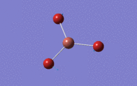 Optimised Br-Tl-Br bond angle = 120.0000o. This value has been compared to literature,[1] which is in agreement with the value obtained in this calculation. Slight deviations can be expected due to variations between optimisations performed by the software.