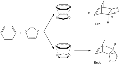 Reaction between cyclohexadiene and 1,3-dioxole can be used to demonstration of an inverse electron-demand Diels-Alder reaction.