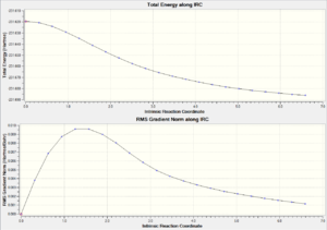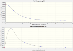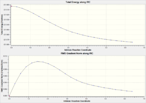 Although the force constant matrix and the frozen coordinate methods are sufficiently to generate the optimized transition, however it is impossible to predict the reaction pathways from the transition states to products. The Intrinsic Reaction Coordinate method functioned in gaussian is a method to predict the reaction path. This allows the minimum path from the transition state to the product (not necessarily the product, as gaussian is only capable in finding the local minimum on the PES) to be followed step by step.