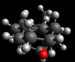Its also been noted that both antropisomers react much slower than other alkene, there given the term 'hyperstable olefins' as they are a class of bridgehead alkenes[8] . The double bond in the bridgehead position causes alot of strain in cyclic molecules, it can adapt a very favourable conformation in larger polycycles. These compunds have been found to have negative olefin strain (OS) values, defined as the difference of the strain energy between the alkene and parent alkane, hence their stability. Inspecting the computed structures of compounds (17) and (18) below shows, that the double bond geometry is indeed close to that in an unstrained alkene. The reaction cannot be modelled using Molecular Mechanics as it involves bond breaking and making, however an ab-initio calculation at a modest level of theory could show the unfavourable energetics. [7]