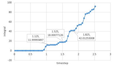 The trapezium rule is not that accurate especially for solid and it can be improved by smaller timestep.