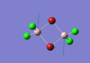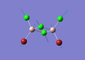 Optimisation was also carried out on the corresponding monomer AlBrCl2 in order to find the dissociation energy of our most stable dimer. As before, we use a full basis set 6-31G(d,p) on Al and Cl, and a pseudo potential LANL2DZdp on Br. Result is shown below: