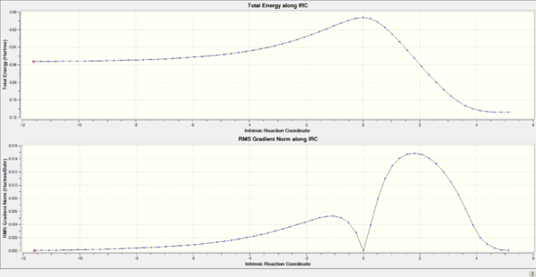 An IRC calculation was then conducted to follow the path between the reactants and products. Additionally it was used to monitor the carbon-carbon bond lengths throughout the reaction.