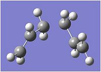 Two of these optimised fragements were placed in the way shown below (fig. 7), such that the separation between the terminal CH2 units were separated by approximately 2.2 Å.