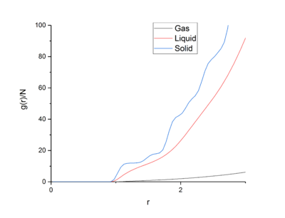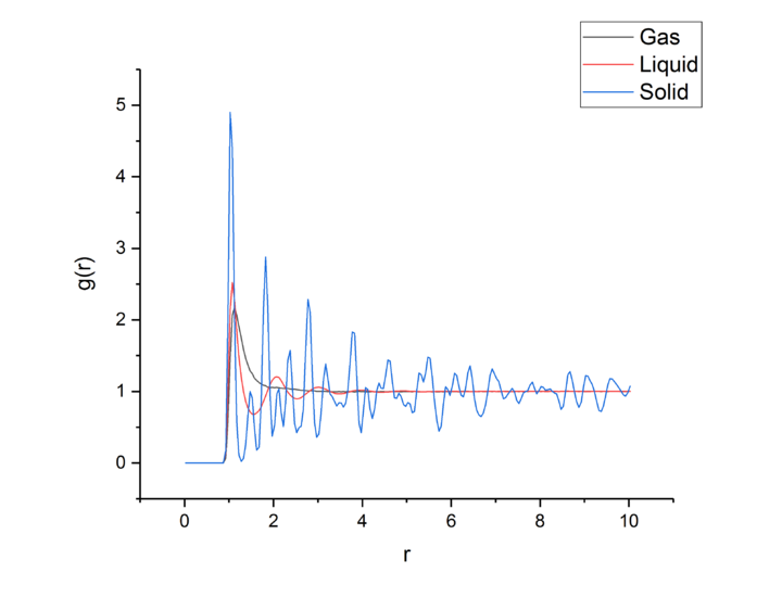 Using VMD [9] the RDFs for a solid, liquid, and gas were found and investigated.