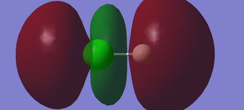 This is the 6σ* molecular orbital of HCl which is the lowest unoccupied molecular orbital (0.01366au). It is formed by mixing 3sp atomic orbital of Cl and 1s orbital of H . It is an anti-bonding orbital.