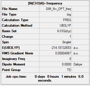 Item Value Threshold Converged? Maximum Force 0.000034 0.000450 YES RMS Force 0.000014 0.000300 YES Maximum Displacement 0.000157 0.001800 YES RMS Displacement 0.000071 0.001200 YES Predicted change in Energy=-3.029697D-08 Optimization completed.