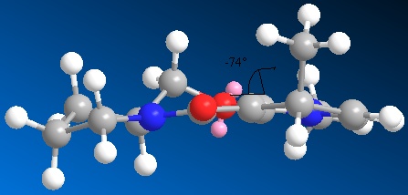Analysis of Isomer B showed that there were two possible chair conformations adopted by the cyclohexane ring. Thus, the chair conformations were swapped to give both forms (Table 10) which showed that one conformatino more was slightly more stable (3 Kcal/mol) than the other. This could be attributed to the sterics involved where one form of the chair orientation resulted in a lesser steric influence as compared to the other.
