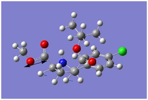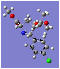 Table 8 shows the total energy minimisations of both possible conformations. The difference in both formations is that (i) The carbonyl bond above the plane relative to the aromatic ring (ii) The carbonyl bond below the plane relative to the aromatic ring. The total energy of both forms varied only by 0.7 Kcal/mol making them very close in energy. Unlike example 1 where the two forms were conformers of each other, here there is negligible difference in energy between the two forms. This was indicative that in example two, both conformations are equally probable. Thus, both have to be accounted for in the reaction with the approaching nucleophile. Also, as the energies of both conformations are very similar there is no thermodynamic influence for one conformation over the other. This also suggests that the dominance for one conformer over the other lies in the energy of the products formed instead of the reactants.