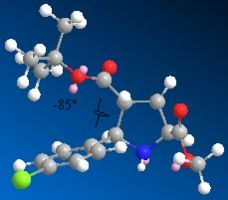 Thus, energy of the starting material (5) was minimised to determine both possible conformers. The MM2 method of minimising energy is based on the logic that it could get 'stuck' in different potential energy wells if the starting points are different. This results in giving the pseudo-minimisation which is not the lowest energy level of the reactant making it inaccurate. Thus, a different number of starting points were investigated by varying the dihedral angle between the carbonyl group and the aromatic ring (Graph 1). From the graph, the total minimum energy of the conformer is attained when the carbonyl group is 12° above the plane of the aromatic ring.