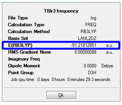 • A vibrational frequency analysis will be carried out to distinguish the minimum energy level from the transition state. The same approach will then be taken with a heavier G(III) element such as thallium to draw parallels and spot differences in calculations brought about by the substitution for a heavier central atom.