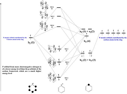 Diagram 47 - Annotated Pi- Molecular Orbitals of Pyridinium ion