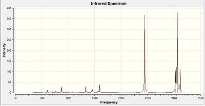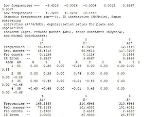 From the table above it can be seen that the calculated results are in good agreement with the literature values and analysis of all 3 log files show that the optimisation did lead to a positive turning point as explained in earlier sections. Thus the vibrational analysis complemented on the successive optimisation carried out for all three analogues. But do to lack of time vibrational analysis was only carried out for the nitrogen analogue. It was also not the 'focused' on method of analysis as the three analogues have different atoms present where the main analysis factor was the MO analysis carried out.