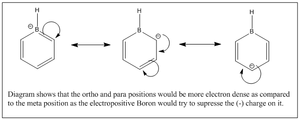 Considering the orbitals, Boron being tri-substituted has a total of only 6 electrons in the valence shell. It is expected to be electron deficient as it has not achieved the stable octet configuration. Thus, availability of the unoccupied Pz orbital makes the compound to be lewis acidic. Being tri-substituted, the boron centre is expected to be SP2 hybridised; the S-orbital to P-orbital contributions to the hybridised orbital should be the 1:2 ratio.