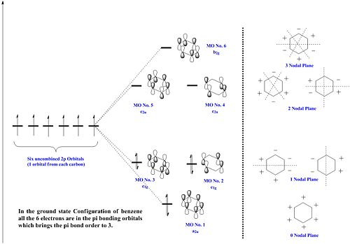 Diagram 51 - Molecular orbital Diagram with nodal planes for benzene