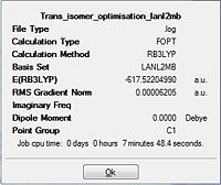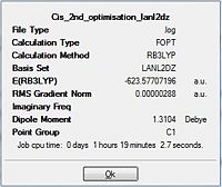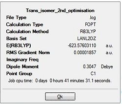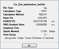 • Molecular modelling of a transition metal complex will be carried out. The importance for the use of Pseudo-potentials and the larger basis sets will be learnt. Also the draw backs of the gaussian software towards inorganic complexes will be understood. The influence of ligands at different positions (cis and trans) has on the overall electronics and strcuture will be analysis via bond length analysis and vibrational analysis as well.