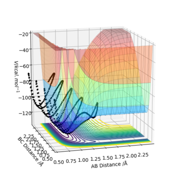 Transition state theory (TST) helps to explain the rates of reaction for elementary chemical reactions. It gives a qualitative approach to reactions but doesn't work for all reactions as it makes approximations. This theory does not take into account the quantization of molecular vibrations or quantum tunnelling. As the theory neglects theses aspects it assumes that if reagents have enough energy to reach the transition state the reaction will occur but the five graphs above show that this is not true as the reaction reaches the transition state in some but the reaction still doesn't occur. Another assumption is that once the reagents overcome the activation everngy (reach the energy maximum) they cannot turn back into products which is also shown in the graphs above to not be true.
