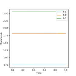 -2.5 | -5.2 | -83.416 | yes | Graph 5 shows the reaction occurring but a long time is spent in the transition state and atom B goes back and fourth between A and C |