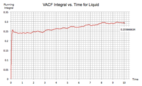 The trapezium rule was used to find the running integral under the VACF curves in the solid, liquid and gas simulations, shown in figure 19.