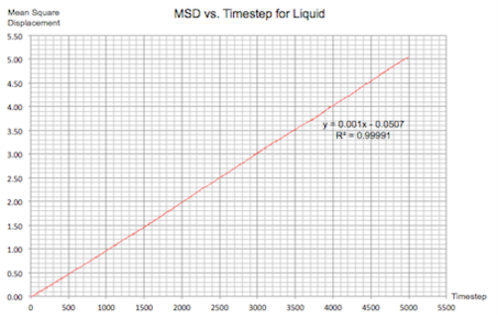Figure 15: MSD vs. Timestep Plots for a Solid, Liquid and Gas |
