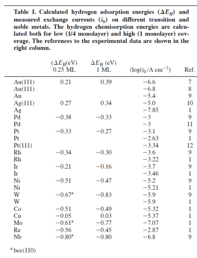 Stimming, U., Trends in the exchange current for hydrogen evolution, Journal of The Electrochemical Society, 152 (3) J23-J26 (2005)
