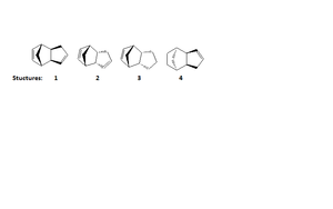 This aim of this part of the investigation was to use ChemBio 3D to draw and model structures 1-4, see image 3. The geometry of each individual structure was optimised using the MM2 energy minimisation calculation, as the lowest energy form of any molecule is always preferred.