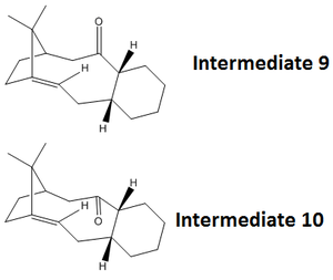 - Intermediate 10 forms a chair cyclohexane structure, carbonyl group ‘down’