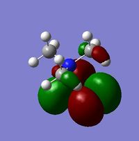 For the HOMO levels the shape of the MO's have not changed much for {N(CH3)3(CH2CN)]+ & {N(CH3)3(CH2OH)]+. However the shape is completely different for [N(CH3)4]+. This is because the different ligands which the other 2 molecules have. However we can see that they are all distinctly strong anti bonding. For the LUMO all the molecules exhibit strong anti-bonding.