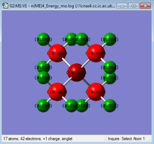 After comparing the charge distribution of [N(CH3)3(CH2OH)]+, [N(CH3)3(CH2CN)]+ and [N(CH3)4]+, it was found that the [N(CH3)3(CH2OH)]+ has the largest charge range of -o.725 to + o.725. Therefore the charge range was modified for the next step in order