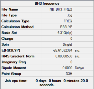 Optimisation of BH3: B3LYP/3-21G level with D3h symmetry