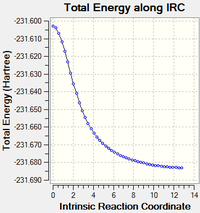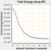 Intrinsic reaction coordinates (IRC) were calculated for both chair and boat transition states in the forward direction of the reaction to find the product structure. Calculations were done using H/3-21G level of theory and were performed with 50 and 150 extra steps. In all IRC calculations the product minimum was reached after 44 steps starting from the chair TS and 45 steps starting from the boat TS. In the IRC starting at the chair transition state the bond breaking and forming distances are identical indicating concerted and synchronous bond formation and dissociation. The product formed is an enantiomer of gauche 2 thus showing that the reaction passing through the chair TS is energetically symmetric. The IRC starting at the boat TS leads to a product identical to the modified reactant conformer. The boat TS, unlike the chair TS, does not posses identical bond breaking and forming distances thus in this reaction pathway bond formation and dissociation is slightly asynchronous.