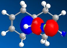 In this exercise a second force field method was introduced [MOPAC/PM6] which uses quantum-mechanical methods in order to include a wave description of the electrons. Using these results the orbital effects and as such the reactivity of Species 12 with dichlorocarbene was investigated.