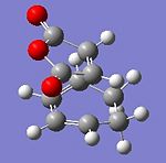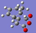 Using optimisation of TS(berny) with semiempirical AM1 methods, the transition state of diels alder reaction bewteen maleic anhyride and cylcohexa-1,3-diene is calculated with MO information. As this reaction is normally governed by kinetic aspects, endo and exo transition state are calculated for analysis.