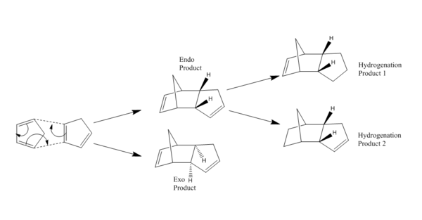 Exo product | Endo product | Hydrogenation product 1 | Hydrogenation product 2 | |||||||||