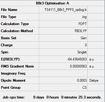 BBr3 Optimisation using 6-31G basis set and pseudopotentials