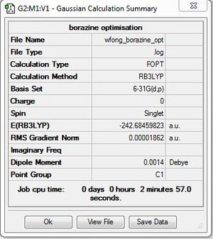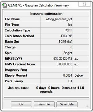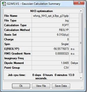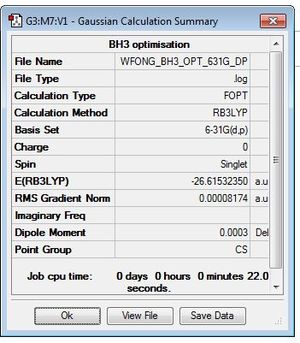 Item Value Threshold Converged? Maximum Force 0.000019 0.000450 YES RMS Force 0.000012 0.000300 YES Maximum Displacement 0.000114 0.001800 YES RMS Displacement 0.000068 0.001200 YES Predicted change in Energy=-1.648522D-09 Optimization completed. -- Stationary point found. |