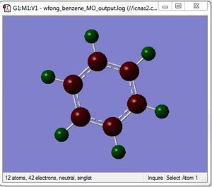 This final set of MOs are selected for discussion, in spite of the difficulty in rationalising the size of the orbital contributions to the resulting MOs. An interesting feature of these row of MOs presented is the significant MO contributions seen in the ring itself; this could possibly be attributed to cluster bonding in the sigma framework itself. In addition, these MOs are particularly of interest in challenging the traditional concept of a "bond". A noticeable feature of these MOs is the through-space bonding interactions observed between the H atoms on the ring. For example, benzene's MO (MO 16) shows a set of bonding interactions between 3 H atoms on the ring, with another set of bonding interactions (out-of-phase to the first set!) on the other 3 H atoms in the ring. This reflects the delocalised nature of bonding as demonstrated by the MO. The involvement of quantum effects etc in computing these MOs hence suggest the limitations of the concept of "localised bonds" in molecules. MOs, as alluded to in the earlier section which discussed the definition of a bond, are hence a useful tool to describe the distribution of electron density, and the nature of bonding in these molecules.