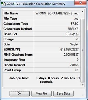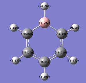 This is an interesting point, as the negative charge can sometimes be mistakenly thought to reside on the B atom, which is inaccurate - the negative charge is delocalised around the ring, and the B atom has a positive charge density (+0.202).
