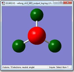By utilising a colour range of -1 (red) to +1 (green), an image of the charge distribution of NH3 is generated: