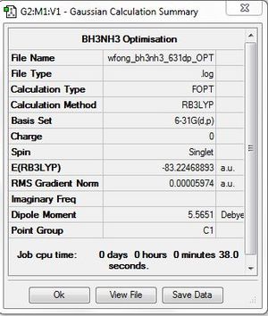 ΔE = E(NH3BH3) - [E(NH3)+ E(BH3)] = -0.0515967 a.u. = -135.0 kJ/mol (Error range of 10 kJ/mol)