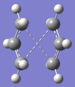 The conformation was then optimized to minimum using frozen coordinate method by freezing the terminal carbons of the allyl fragments. Therefor the two pairs of end point where the bonds form and break during the transition state can be fixed and the bond length of each pair equalled to 2.2 Å.
