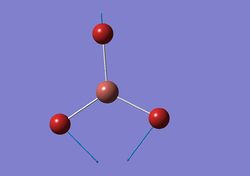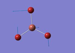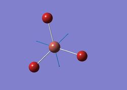The Br-Tl bond length of the optimised TlBr3 is 2.65A and the Br-Tl-Br bond angle is 120.00. These generally agree with the literature[3] where the bond length is 2.51A and the bond angle is 120.00.