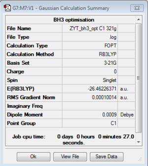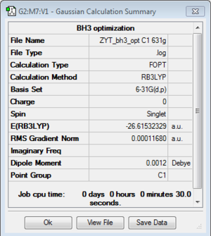 Energy exactly the same as previous optimization 6-31G BH3 model. |