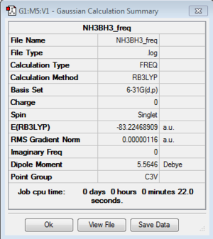 Energy exactly the same as previous optimization 6-31G NH3BH3 model. |