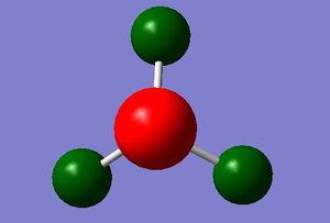 The geometry data table shows the bond lengths and bond angles found from the optimised structures of BH3, BBr3 and GaBr3. The table shows that the E-X bond length increases upon changing the ligand on the B atom from H to Br. The increase in bond length from 1.19 Å to 1.93 Å is as a result of difference in orbital overlaps. The larger, more diffuse orbitals of Br have a poorer orbital overlap with the atomic orbitals of B and so a weaker, longer bond is formed.