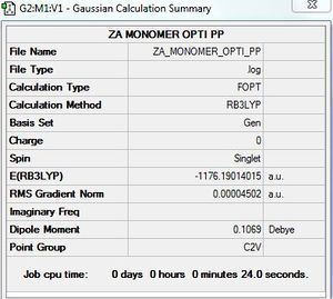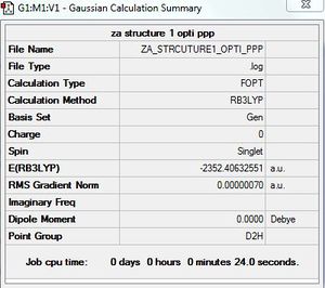 Item Value Threshold Converged? Maximum Force 0.000002 0.000015 YES RMS Force 0.000001 0.000010 YES Maximum Displacement 0.000023 0.000060 YES RMS Displacement 0.000010 0.000040 YES Predicted change in Energy=-8.849071D-11 |