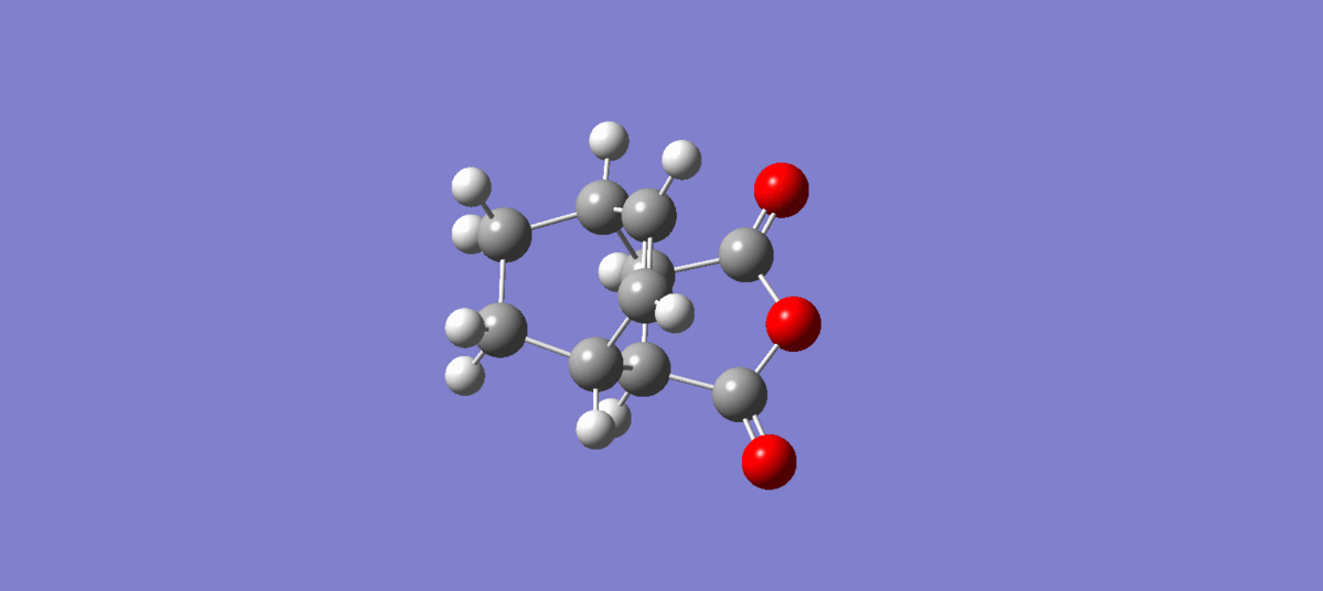 the guessed transition state structure for this cycloaddition is drawn on the assumption that the transition structure is very similar to the final product, using Hammond's postulate [2] , therefore the guessed structure is drawn by removing the two newly formed σ C-C bonds. The structure is then optimised to a transition state (Berny) using HF/3-21G level of theory as it is the quickest method to do. The transition state is then obtained, as shown below, and it is confirmed via the IRC method and the animation of which is also shown below.